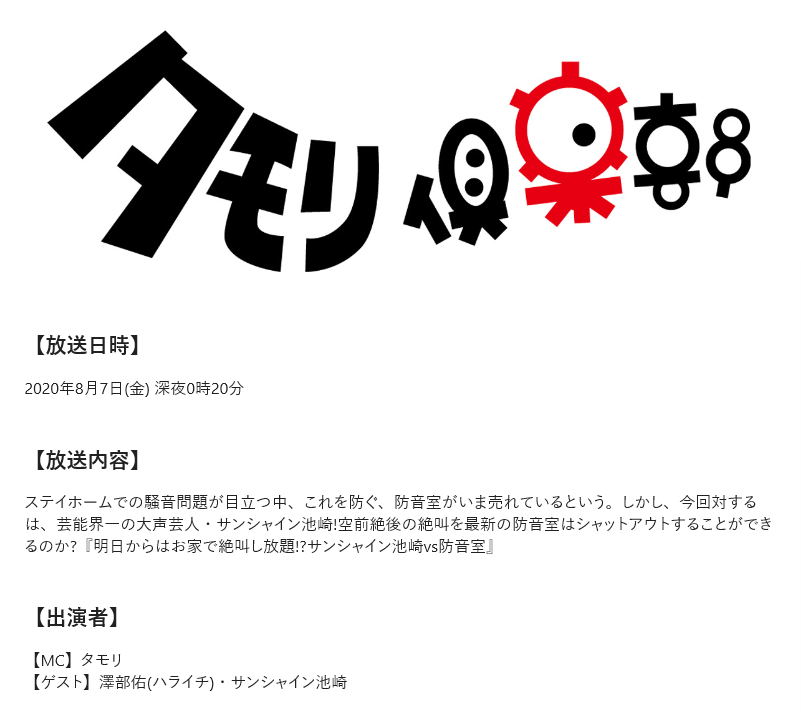 番組HP https://www.tv-asahi.co.jp/tamoriclub/#/?category=variety